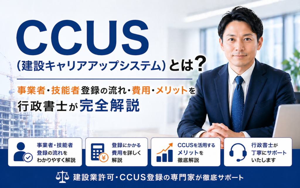 この記事では、行政書士の立場から、CCUSの基本構造、事業者登録・技能者登録の流れ、カードレベル4段階の判定基準、費用、公共工事での義務化動向、補助金活用、登録代行を行政書士に依頼するメリットまで、建設業経営者と技能者の双方に必要な実務情報を徹底的に解説します。